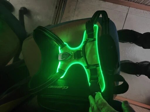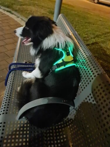 Mon chien ressemble à un sapin de Noël en balade, mais en version sportive et sécuritaire ! Les voitures nous voient de loin, et moi je rigole à chaque fois. Super achat.